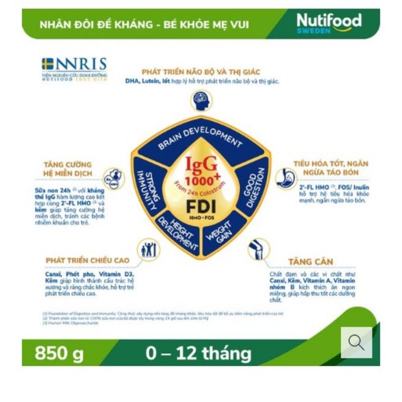 Thành phần đột phá Sữa non 24h với kháng thể IgG hàm lượng cao kết hợp cùng 2′-FL HMO (là prebiotic có cấu trúc tương tự như dưỡng chất được tìm thấy trong sữa mẹ) và Kẽm giúp tăng cường hệ miễn dịch, tránh các bệnh nhiễm khuẩn cho trẻ.