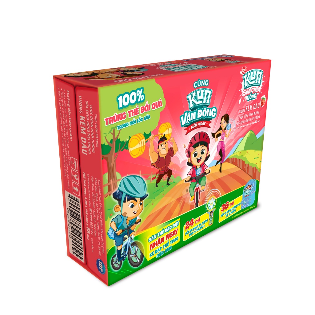 Sữa Kun sữa chua uống hương kem dâu thùng 48 chai x85ml Kun