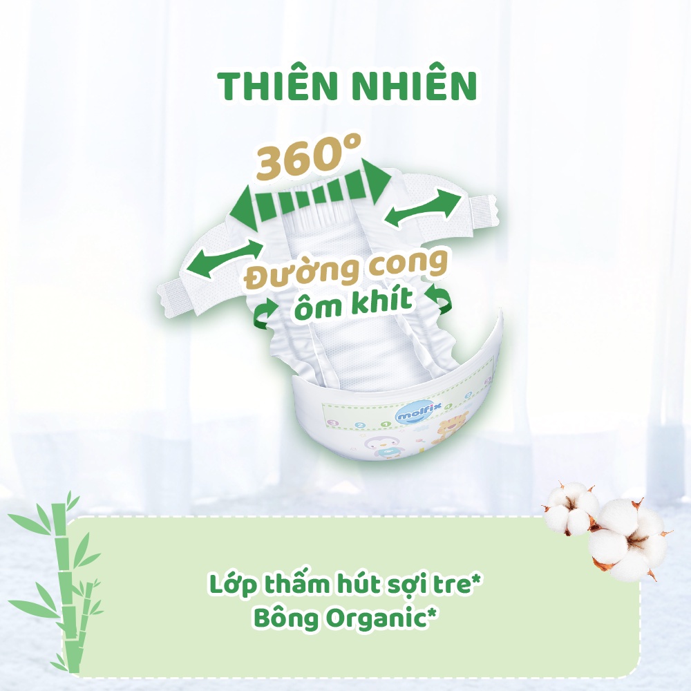 Tã lót thiên nhiên Molfix – Lớp thấm hút Sợi tre tự nhiên và Bông Organic*.