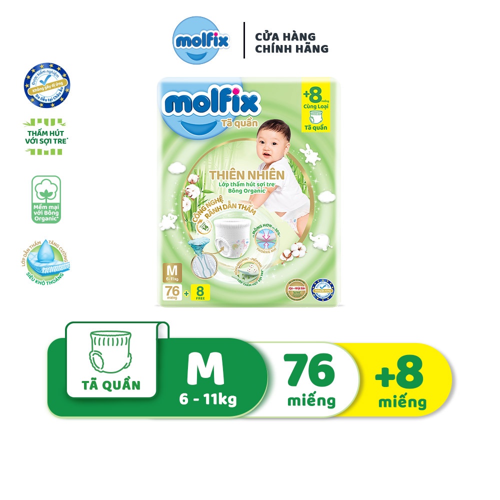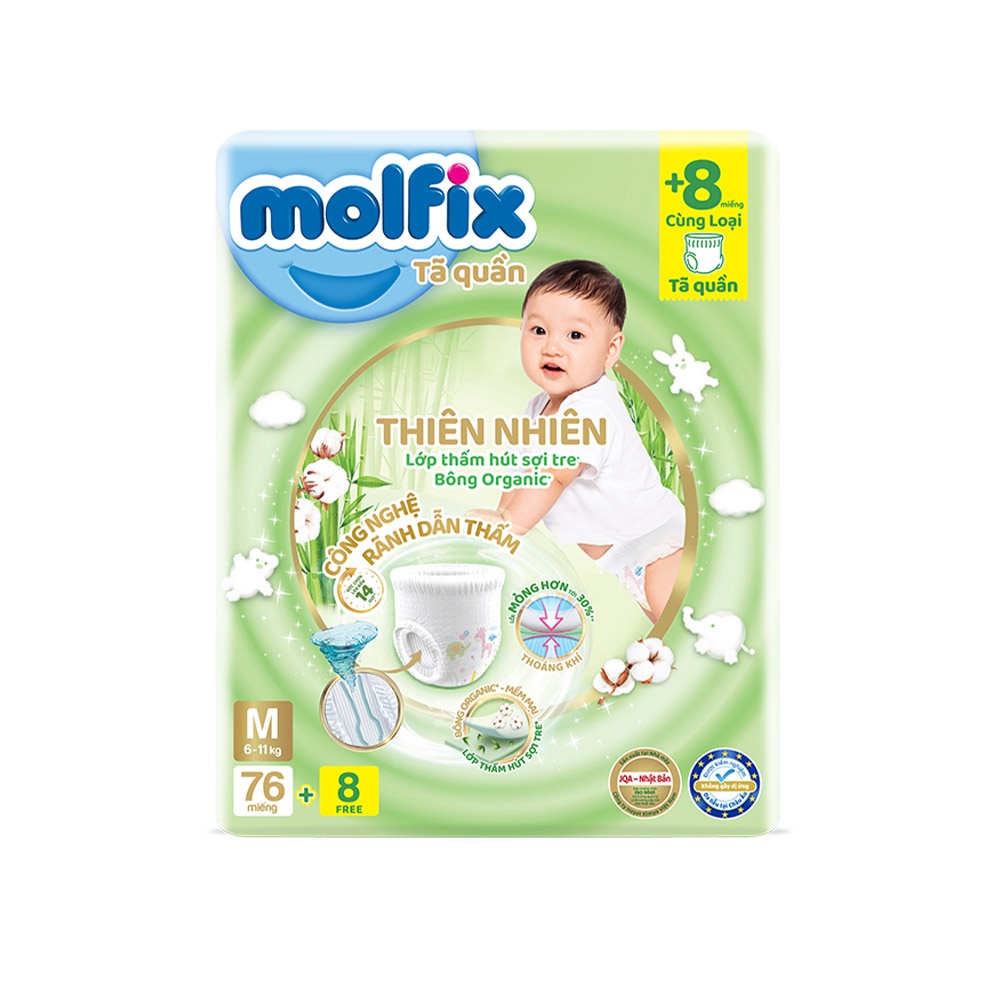 Tã/bỉm quần Molfix Thiên nhiên Ultra M (6kg – 11kg) – Gói 76+8 miếng